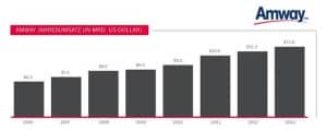 Ada, Michigan/ München – Amway verzeichnet für das Geschäftsjahr 2013 einen weltweiten Gesamtumsatz von 11,8 Milliarden US-Dollar. Das Familienunternehmen erzielt damit einen Umsatzrekord und übertrifft erneut das Vorjahresergebnis, das sich 2012 auf insgesamt 11,3 Milliarden US-Dollar belief. Mit diesem Erfolg setzt Amway seinen Wachstumskurs der letzten sieben Jahre weiter fort. Vorstandsvorsitzender Steve Van Andel und Präsident Doug DeVos wissen, wem sie diese positive Entwicklung zu verdanken haben: „Unsere Vertriebspartner sind die treibende Kraft hinter diesem bemerkenswerten Erfolg, unterstützt durch unsere 21.000 Mitarbeiter weltweit“. In der gemeinsamen Erklärung heißt es weiter: „Selbständige Amway Vertriebspartner in über 100 Ländern und Territorien verwirklichen mit ihrem Amway Geschäft ihr unternehmerisches Potenzial und erzielen wieder ein Rekordjahr für das Unternehmen.“ Die jährlichen Umsatzzahlen des Unternehmens umfassen Erträge aus dem Direktvertrieb und aus Unternehmensbeteiligungen.