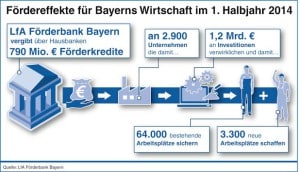 „Viele Firmen verdienen gut und können sich aus Eigenmitteln finanzieren. Aber gerade kleinere Betriebe und Gründer haben größenbedingte Finanzierungsnachteile – sie nutzten auch im letzten Halbjahr unsere Förderkredite kräftig, um Modernisierungen in Höhe von rund 1,2 Milliarden Euro zu verwirklichen. Durch diese Investitionen konnten die Unternehmen über 64.000 bestehende Arbeitsplätze sichern und rund 3.300 neue Arbeitsplätze schaffen“, erklärt LfA-Chef Dr. Otto Beierl.