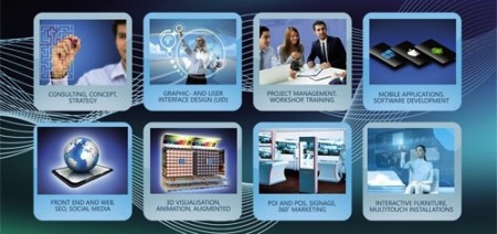 Neben og. Dienstleistungen beschäftigen wir uns fokussiert mit Interface- und Applikations-Design für mobile/stationäre Lösungen zum Einsatz am PoI/PoS. Digitale Online Services gehören ebenfalls zu unserem Portfolio. 3D- und Animations-Profis, sowie spezialisiertes Wissen im Bereich Multisensorik/Digital Signage runden unsere Dienstleistungs- und Servicepalette optimal ab.