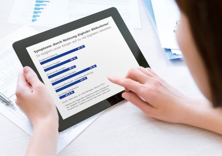 Aalen – Unsere Augen sind nicht gebaut für die immer stärker zunehmende Nutzung von digitalen Endgeräten. Untersuchungen (1) zeigen: Mehr als zwei Drittel der Erwachsenen, die regelmäßig digitale Displays nutzen, sind von Beschwerden betroffen, die schlicht auf eine Sehbelastung zurückzuführen sind. Und eine Umfrage unter rund 800 Teilnehmern aus Deutschland und Österreich im Alter zwischen 30 und 45 Jahren ergab, dass 61 Prozent über Augenermüdung, 38 Prozent über brennende Augen, knapp zwei Drittel über Nackenverspannungen und 31 Prozent über Kopfschmerzen klagen. (2)